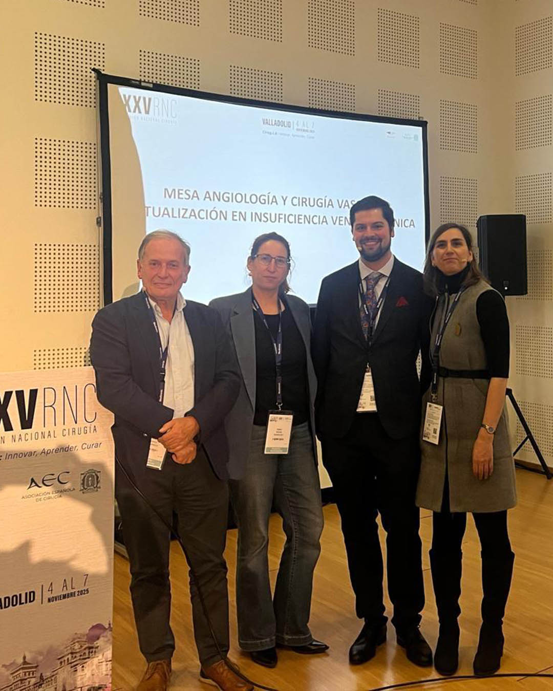 En esta edición, tuve el honor de participar en la mesa redonda “Actualización en la insuficiencia venosa crónica”, organizada por la Sección de Angiología y Cirugía Vascular. La sesión contó también con la destacada intervención de la Dra. Isabel Rivero, la Dra. Laura Saiz y el Dr. Sergio Fernández, quienes aportaron su experiencia y conocimiento sobre esta patología tan prevalente.